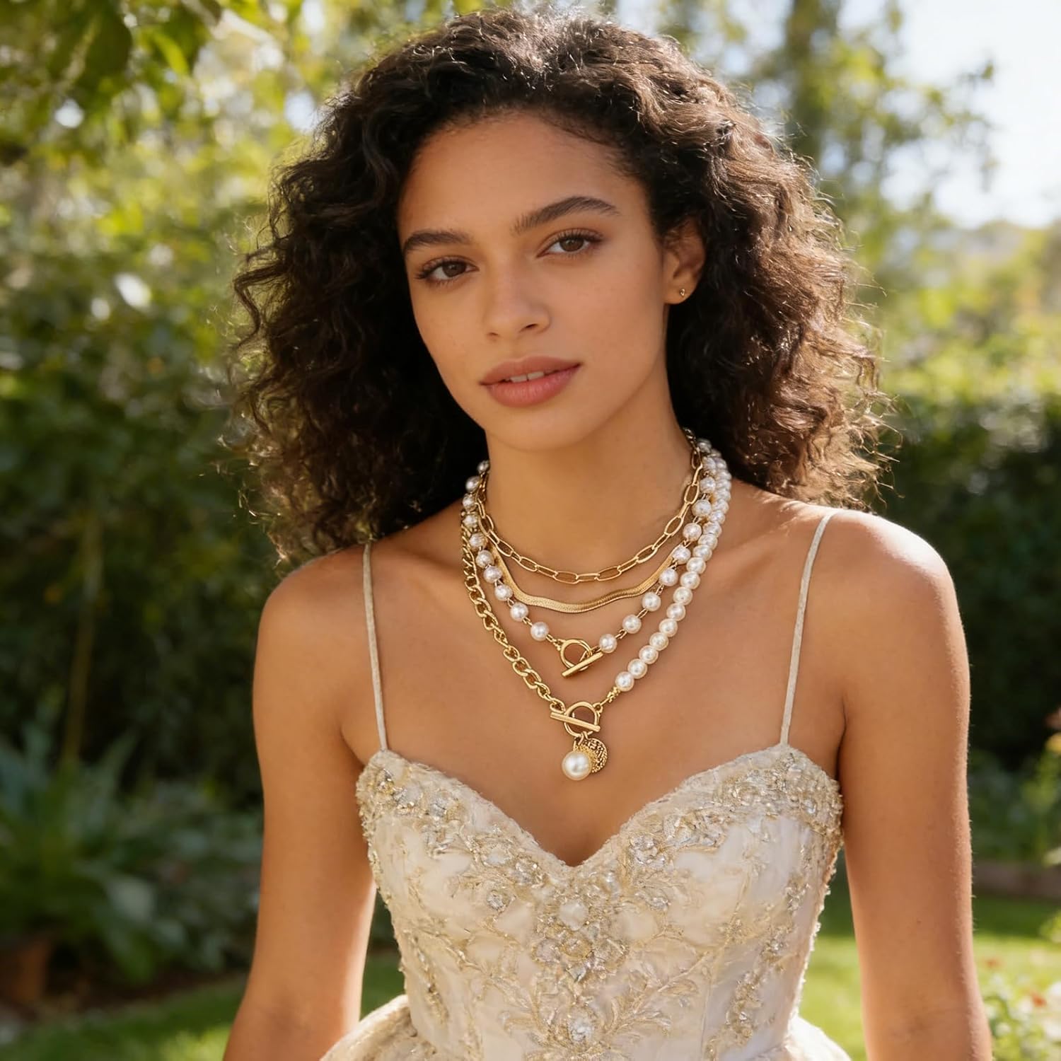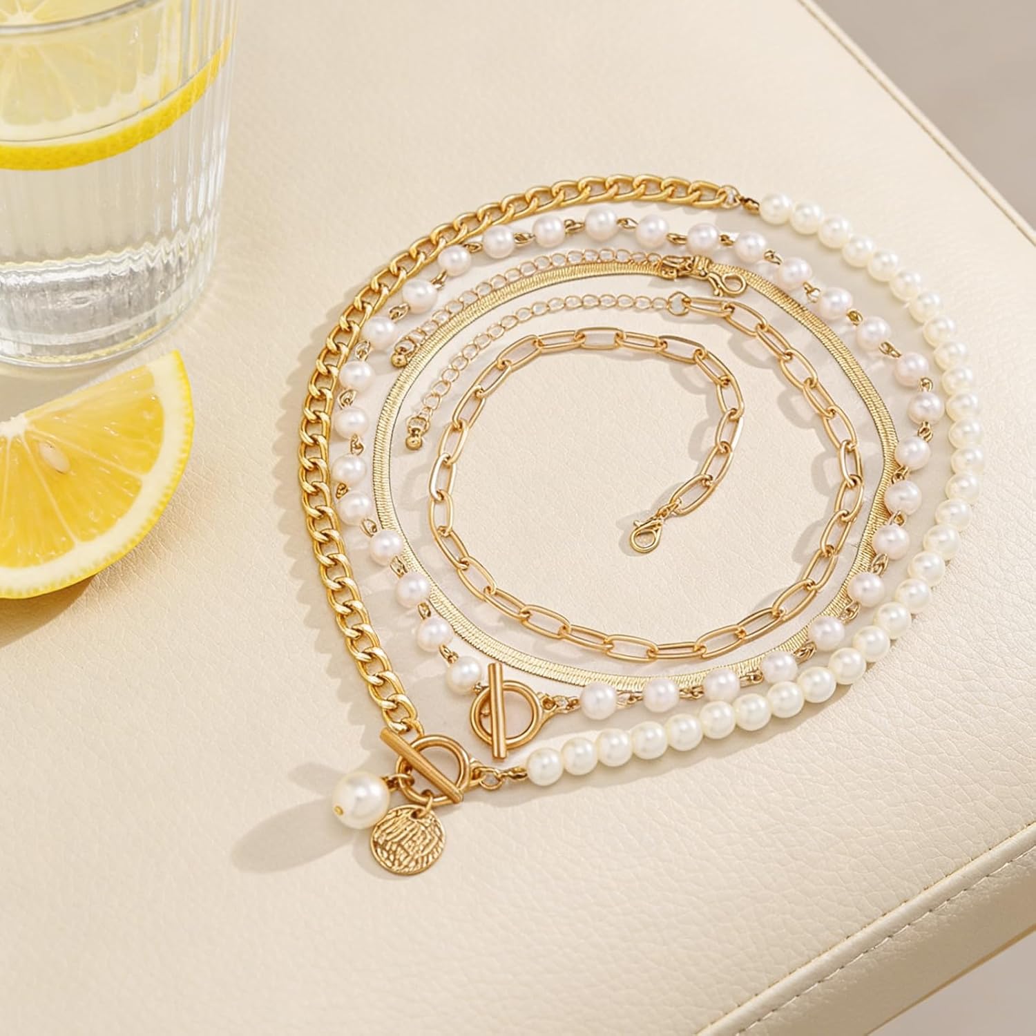 Gold Layered Chunky Necklace for Women Paperclip Chain Pearl Necklace Herringbone Necklace Gold Chunky Necklaces