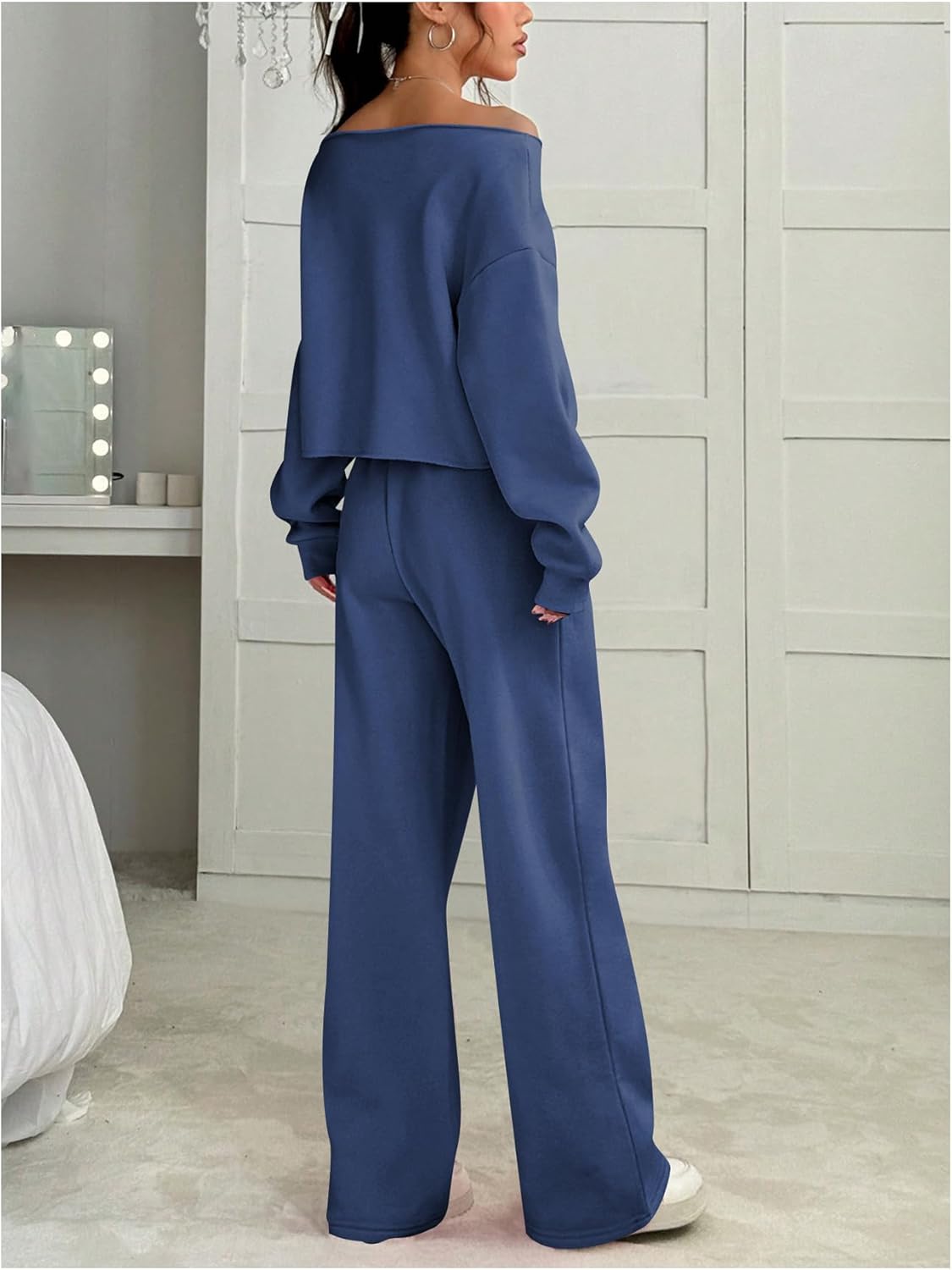 SOLY HUX Women’s 2 Piece Outfits Fall Sweatsuits Off The Shoulder Crop Top Wide Leg Sweatpants Casual Matching Lounge Sets