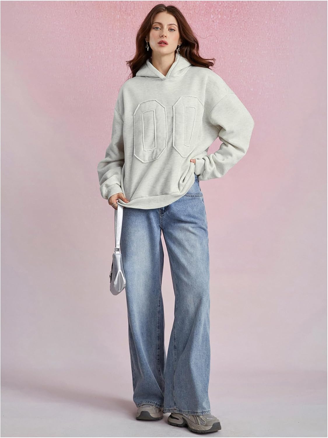 Verdusa Women’s Number Patched Oversized Hoodie Sweatshirt Pullover Tops Streetwear Fall Clothes