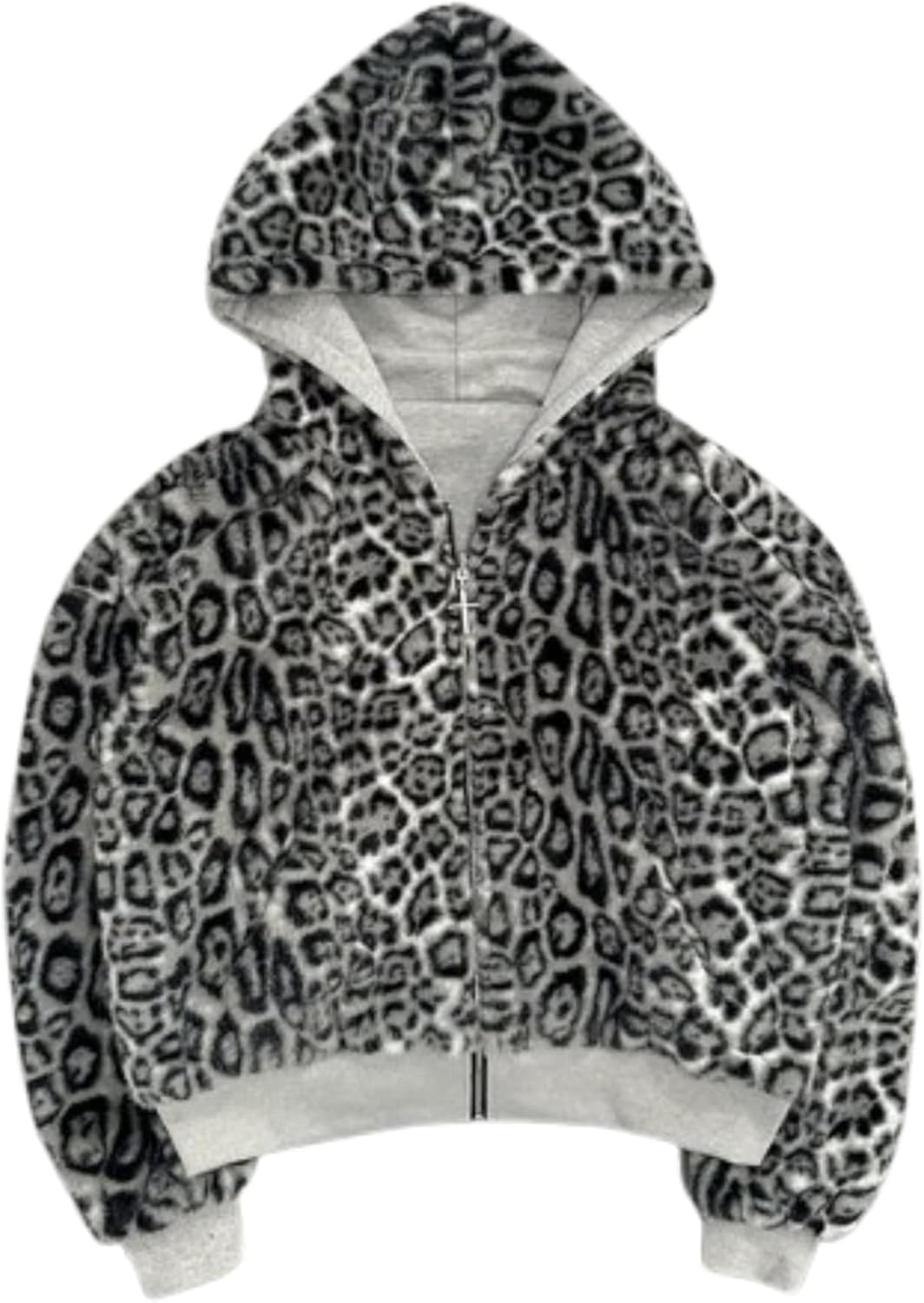 Y2k Reversible Zip Up Jacket Grunge Streetwear Vintage Leopard Print Jacket Baggy Long Sleeve Hoodie Unisex