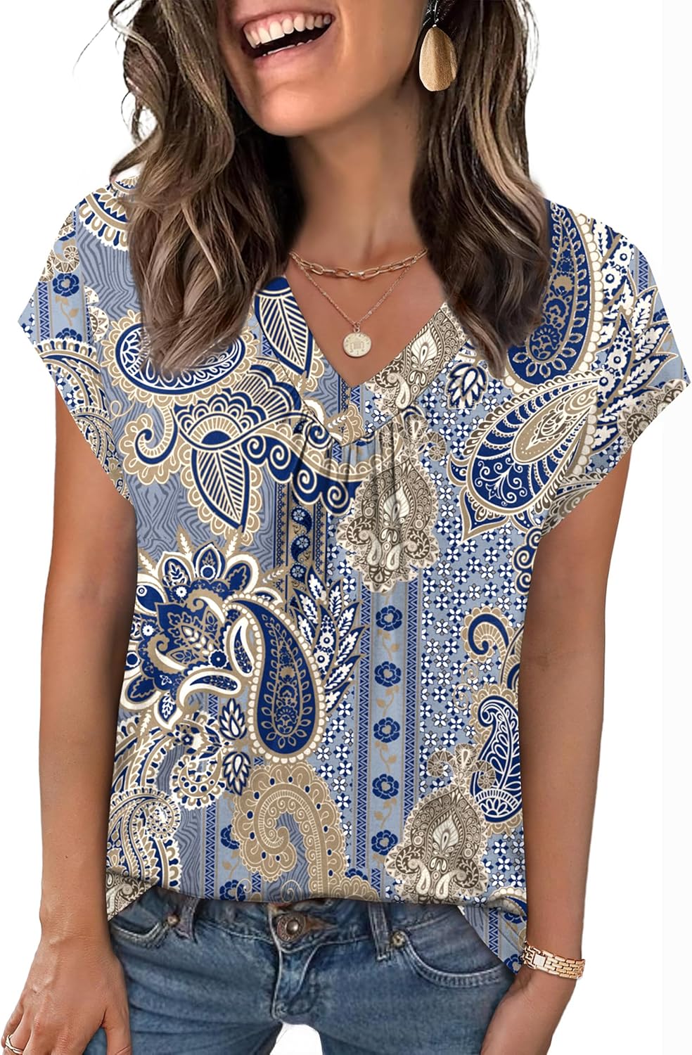 Zeagoo Womens Tops Short Sleeve V Neck Shirts Summer Dressy Casual Business Clothes Work Blouses Fashion Clothing Outfits